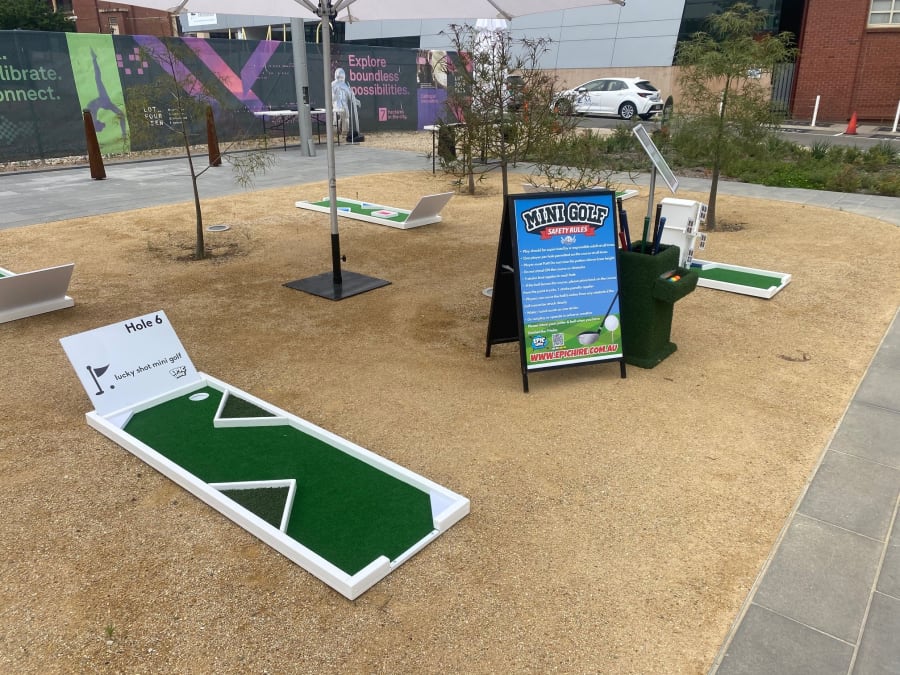 Our mini golf courses are always provided with more than enough putters (in all sizes), many golf balls available in a range of colours, putter holder and professional safety signage. We build and maintain our courses in house and they are always well presented on site.