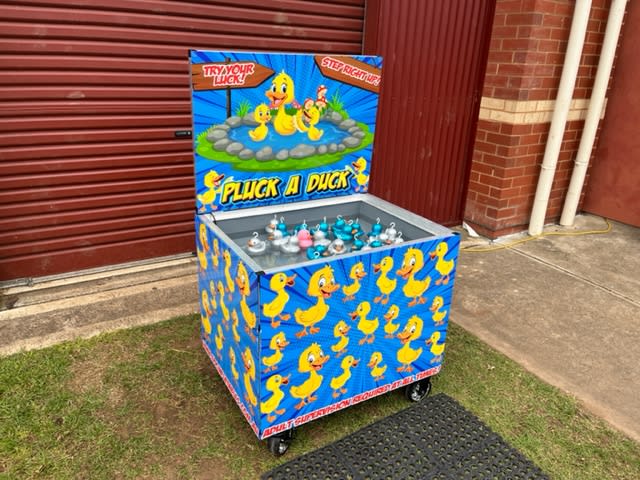 Create a true carnival atmosphere with our custom made Lucky Duck Pond game. A featured attraction at any carnival this game is loads of fun for kids and can be played with or without prizes. All the ducks have numbers under neath so the kids can simply play for highest score wins!