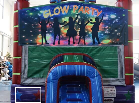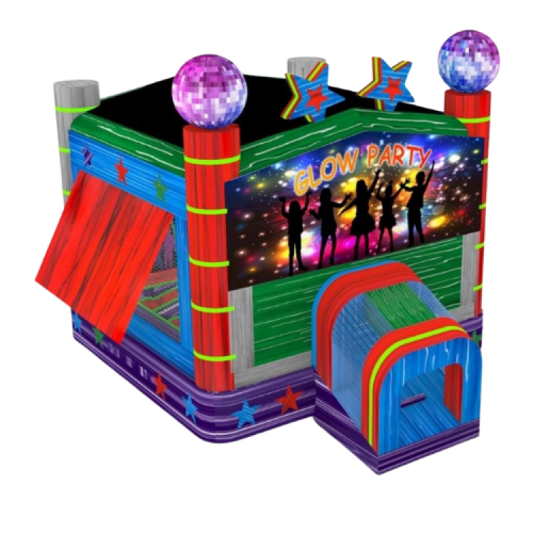 This awesome castle is an absolute beauty. Our new Glow castle features custom neon highlights, led lighting, roll down windows, inflated pop ups, basketball ring and a decent bounce area. The whole castle is made with a unique marble vinyl that presents perfectly in any setting. With the roll down windows and full roof the kids can create a dark environment even outside in the sun! This unit is great for discos, backyard evening parties and fun incursions.