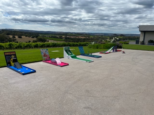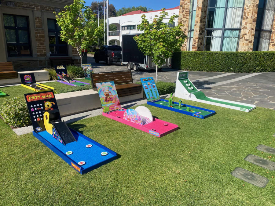 Epic new Crazy Golf Course is now available for hire after months of work in the shed! Our new and improved truely crazy golf course is a 9 hole course with each hole themed in its own genre! Lots of time and effort has gone into producing something with that wow factor which the Adelaide mini golf market lacks.
