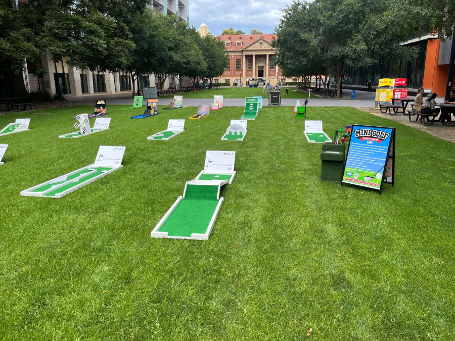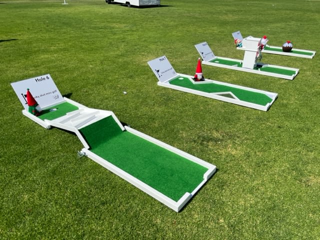 Our mini golf courses are always provided with more than enough putters (in all sizes), many golf balls available in a range of colours, putter holder and professional safety signage. We build and maintain our courses in house and they are always well presented on site.