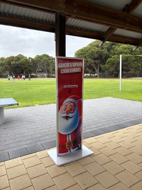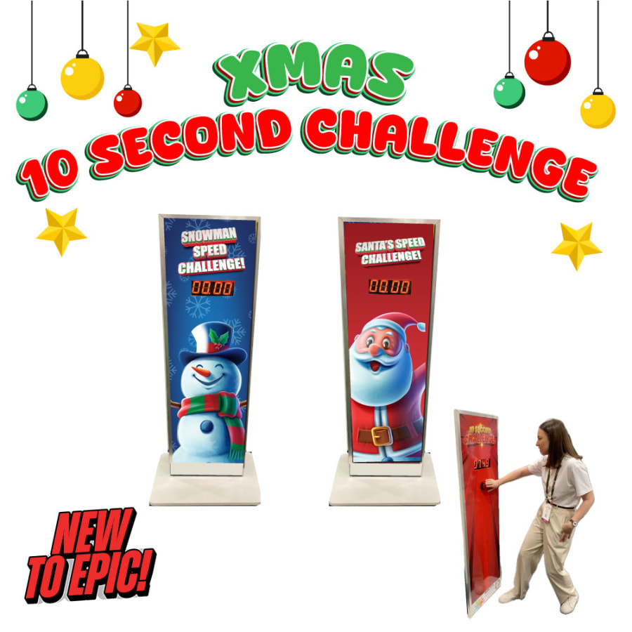 This game is a fun addition to any event. Players have to test their reaction speed to see if they can stop the clock dead on 10:00 seconds! Sounds simple but this game is harder than it seems and is a great test for your reflexes! Available in Santa or Snowman themes.