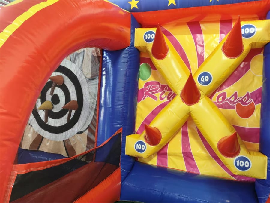 Our big top circus carnival game inflatable is a massive winner. This impressive unit features 3 fun games for kids and adults to play: Basketball shoot out, axe throw and ring toss! This inflatable provides a variety of activities in the one unit. Presents extremely well creating a great atmosphere for your event.
