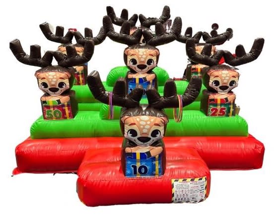 Our new reindeer toss is a bright and bubbly inflatable game that suits just about all ages. Players compete to toss rings onto the reindeers to score the highest points! Simple but very effective in providing fun for everyone.