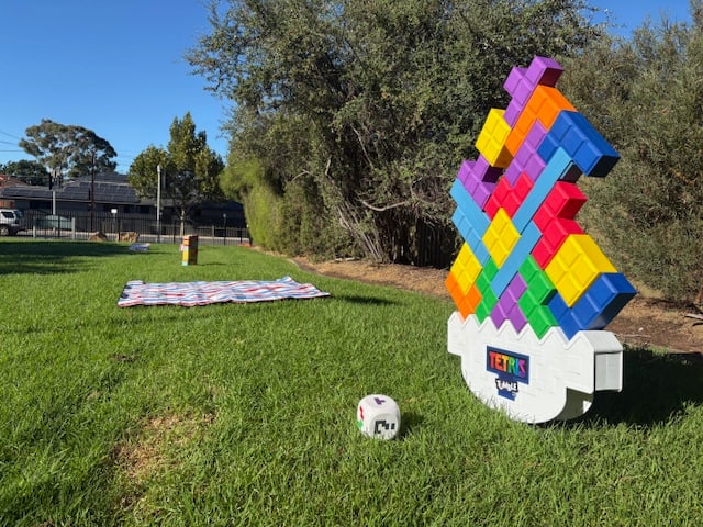 Tetris Tumble is a great game for all ages and abilities. A bright and colourful addition to your party or upcoming event. Players have to take turns stacking tetris bricks whilst trying not to make the base rock and all the blocks come tubling down. A simple but very effective fun making device!