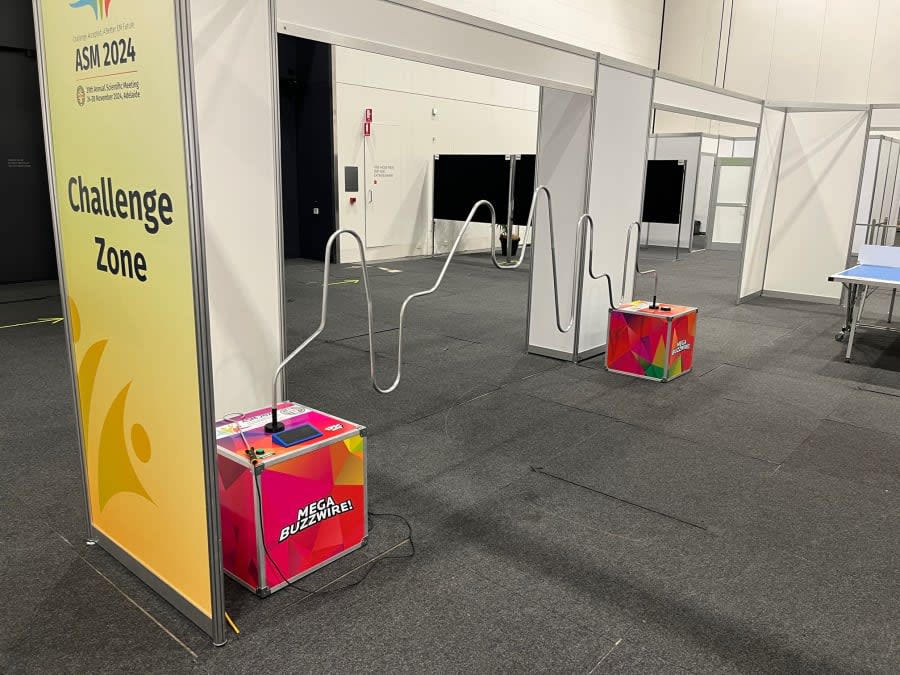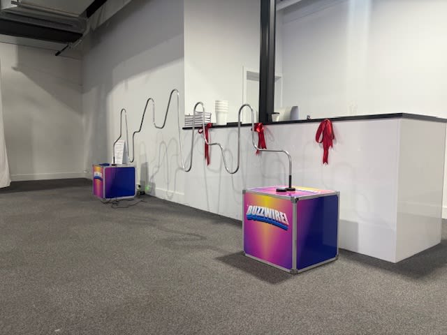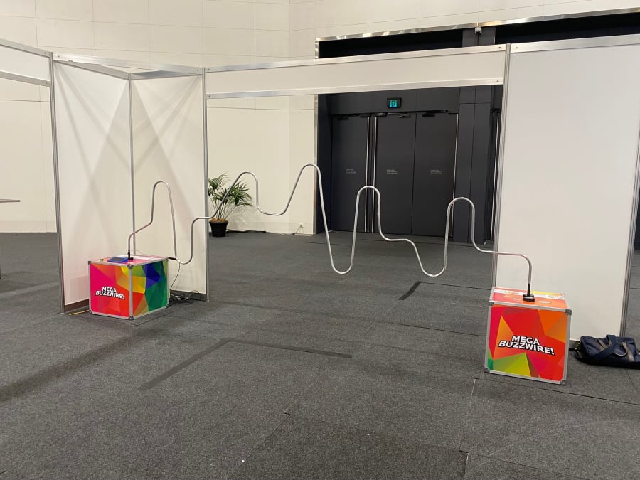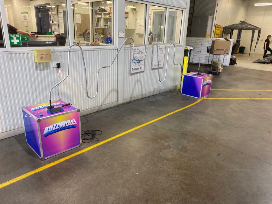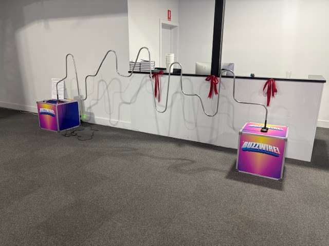 Our new Buzz Wire is a first in Australia at over 4.3m in length this makes it (far as we can see) the largest Buzz Wire in, wait for it, the world! Featuring electronic scoring and adjustable difficulty settings this game is sure to be a great draw card to any event, trade show, conference or expo.